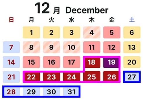 2025年12月の渋滞予想カレンダー