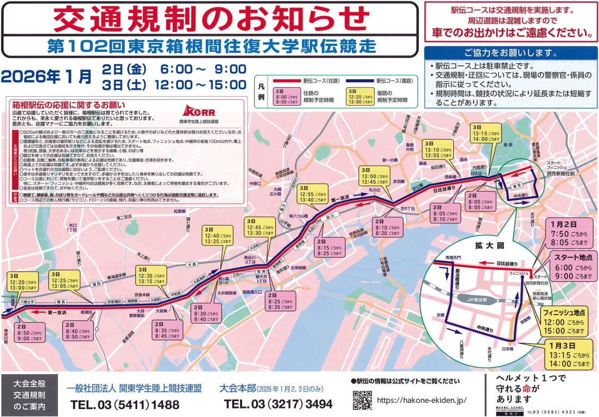 令和8年1月3日(土)午後12時00分~15時00分(復路)
