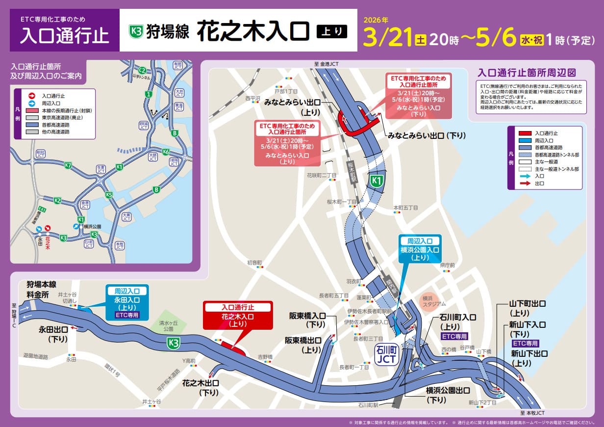 首都高速道路株式会社ウェブサイトに2026年3月着工の工事に伴う通行止めの情報を掲載しております。