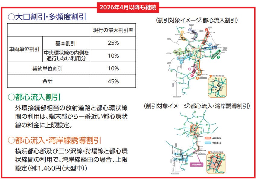 • 都心流入割引、都心流入・湾岸線誘導割引を継続