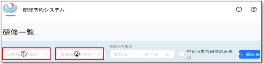 研修予約システムにて受付を行います。電話、FAX、メールによる受付は行いません。